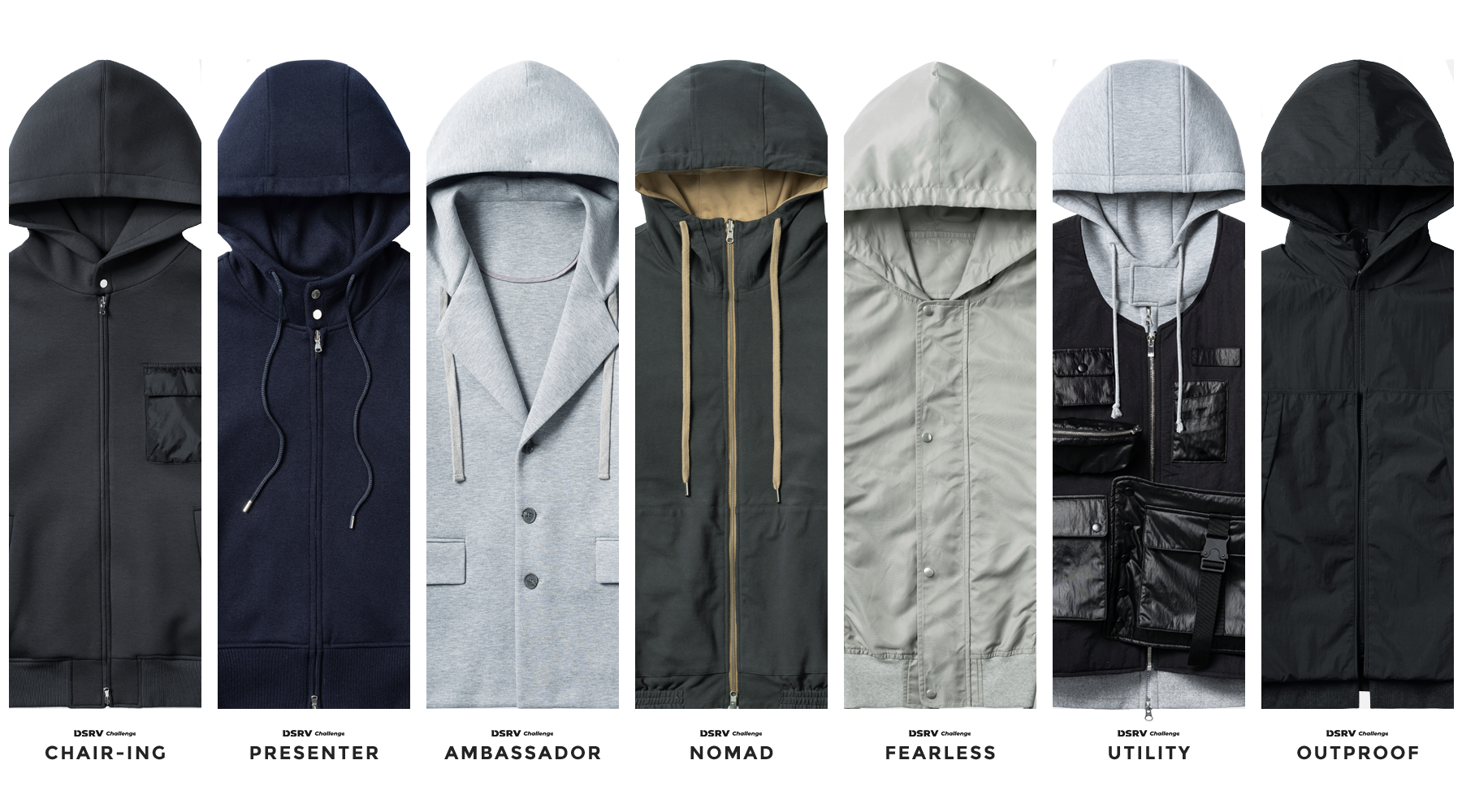 각 카테고리를 대표하는 7벌의 CHALLENGERS 후드 자켓과 7개의 CHALLENGERS 백과 함께 디저브 챌린지가 런칭되었습니다.