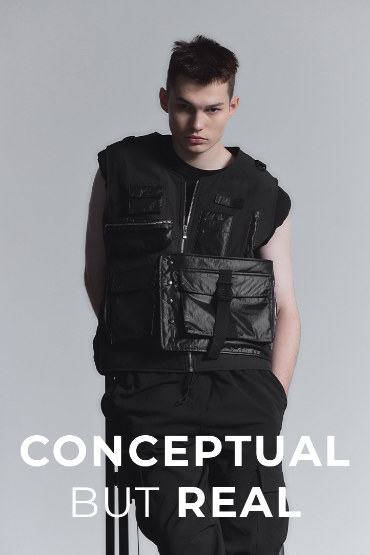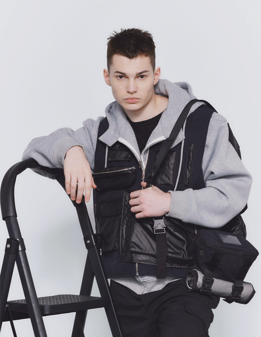 테크웨어 스타일의 멀티 포켓 베스트·후드 자켓