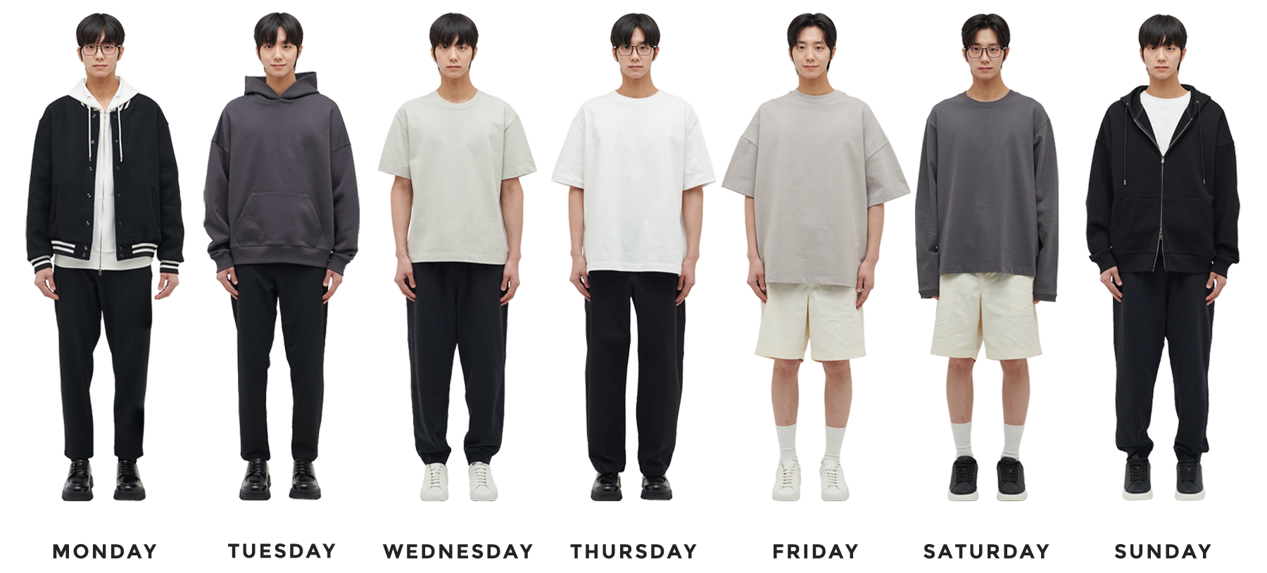 에센셜 라인은 다양한 직업, 연령, 성별, 체형의 사람이 입어도 잘 어울릴 수 있는 옷은 무엇일까?에 대한 고민에서부터 시작되었습니다.