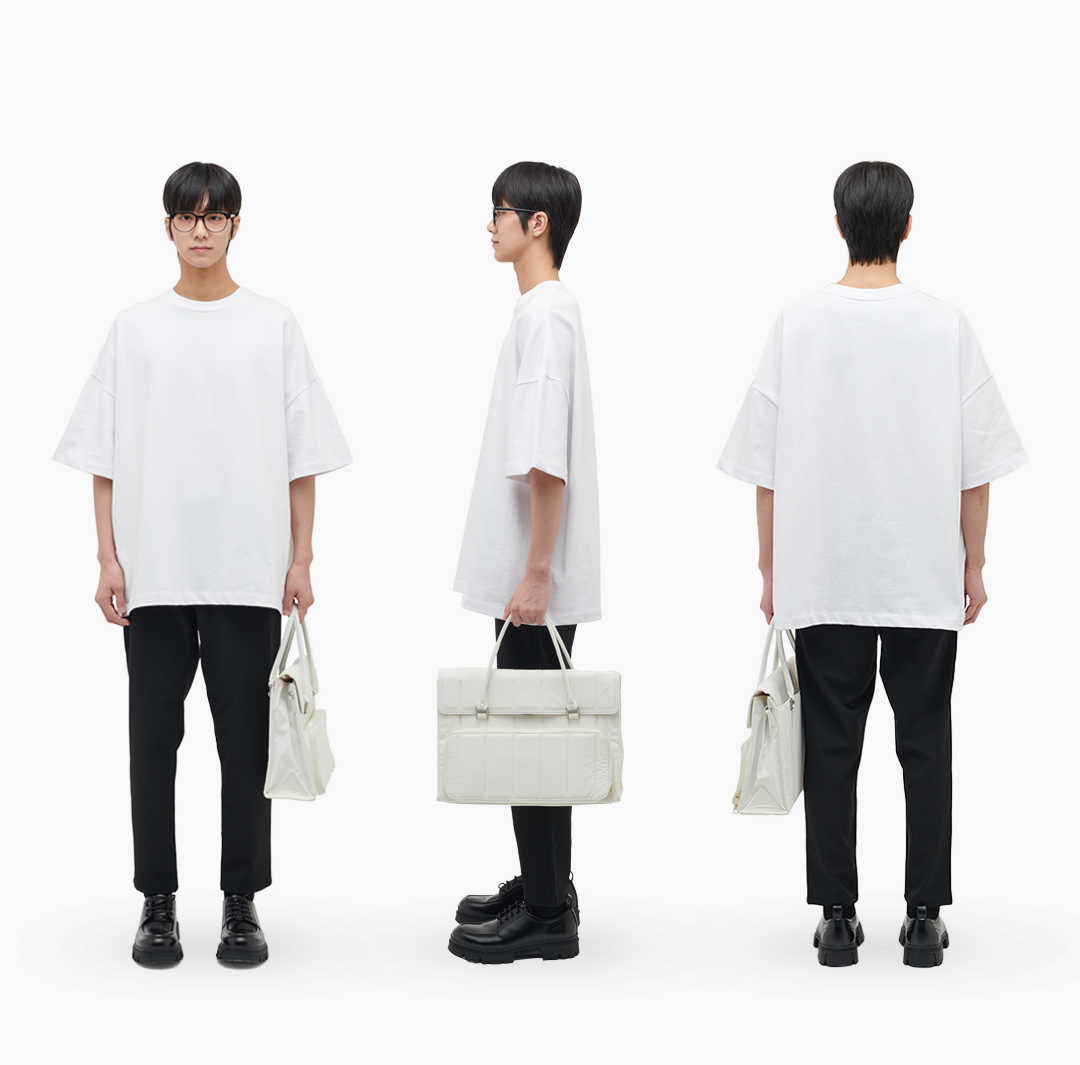티셔츠의 핏이 클 경우 원단에 힘이 없으면 실루엣이 무너지며 아래로 힘 없이 쳐지기 쉽지만 디저브 에센셜 오버사이즈 티셔츠는 도톰하면서 탄력있는 저지 소재로 제작되어 오버사이즈 아이템 특유의 매력적인 실루엣을 유지해줍니다.