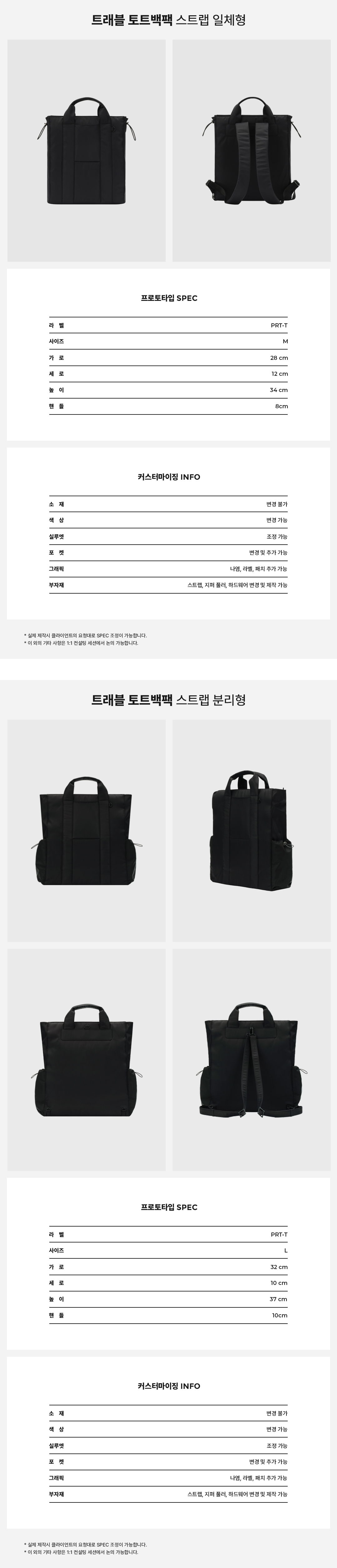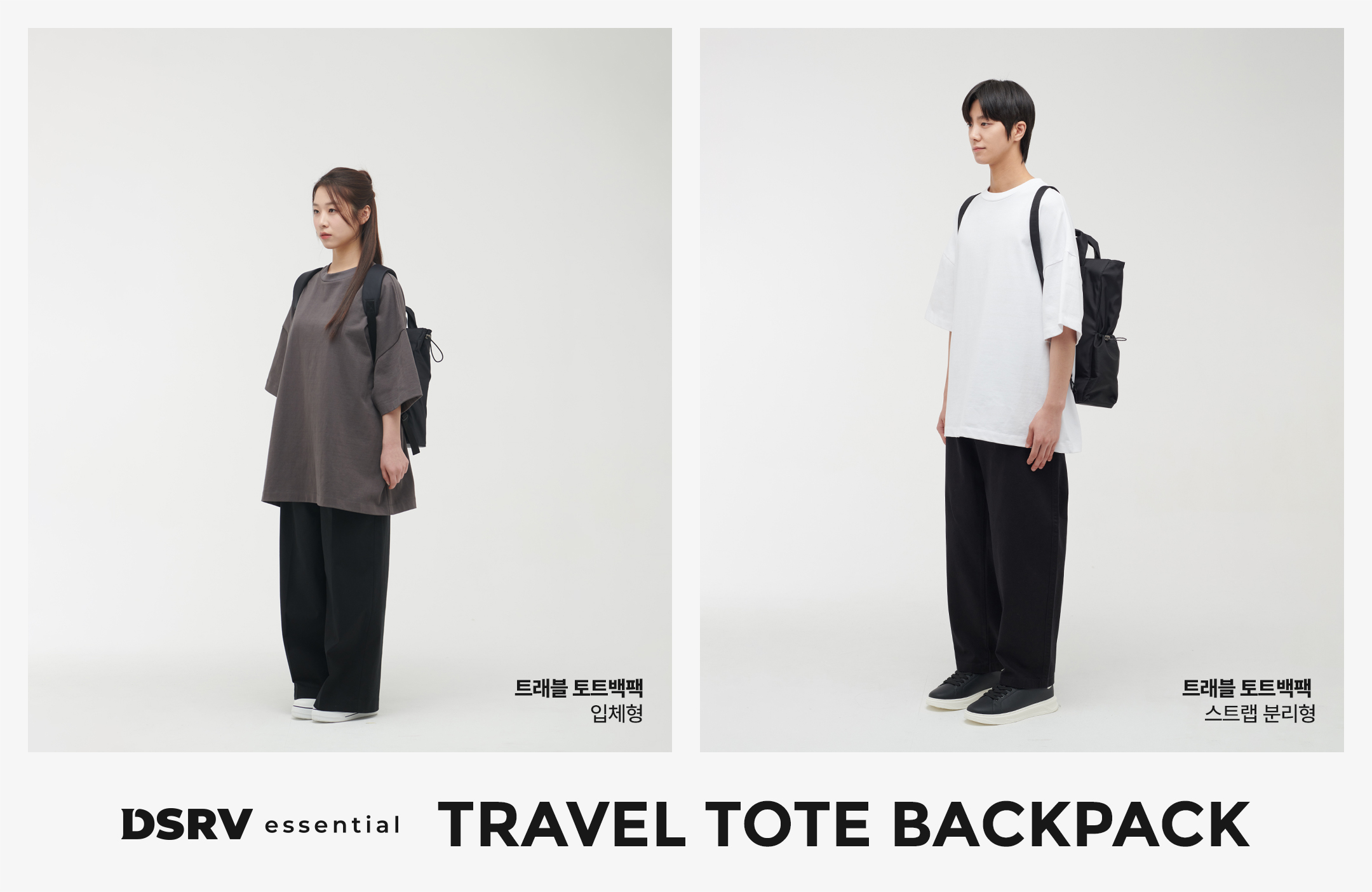 옷장에 필수로 갖춰야 할 기본적인 아이템으로 구성된 라인인 디저브 에센셜의 트래블 토트백팩은