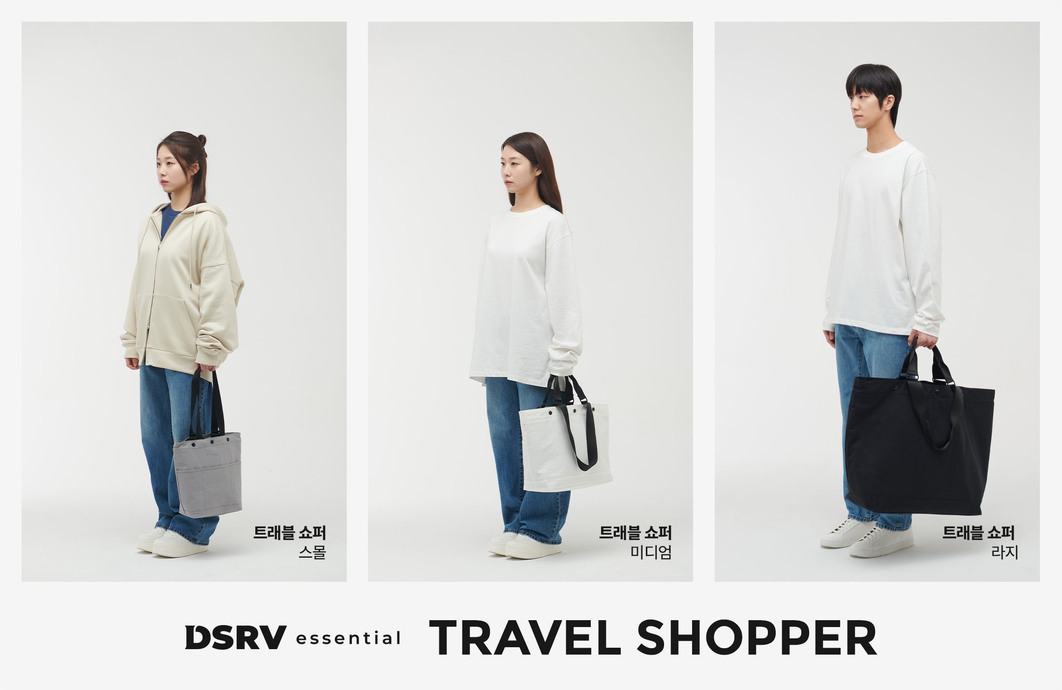 옷장에 필수로 갖춰야 할 기본적인 아이템으로 구성된 라인인 디저브 에센셜의 트래블 쇼퍼는