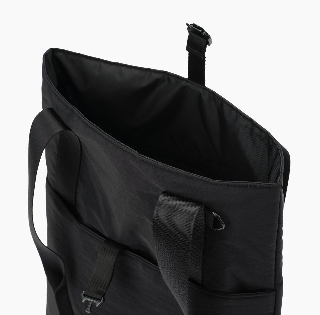 가죽이 아닌 원단으로 가방을 만들시 실루엣이 무너지며 아래로 힘 없이 쳐지기 쉽지만 디저브 에센셜 버클 토트는 부드러우면서도 견고하게 힘있는 나일론 소재로 제작되어 많은 물건을 담아도 찢어지지 않고 실루엣을 유지합니다.