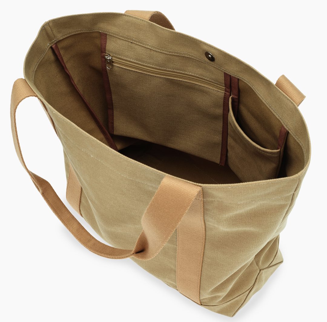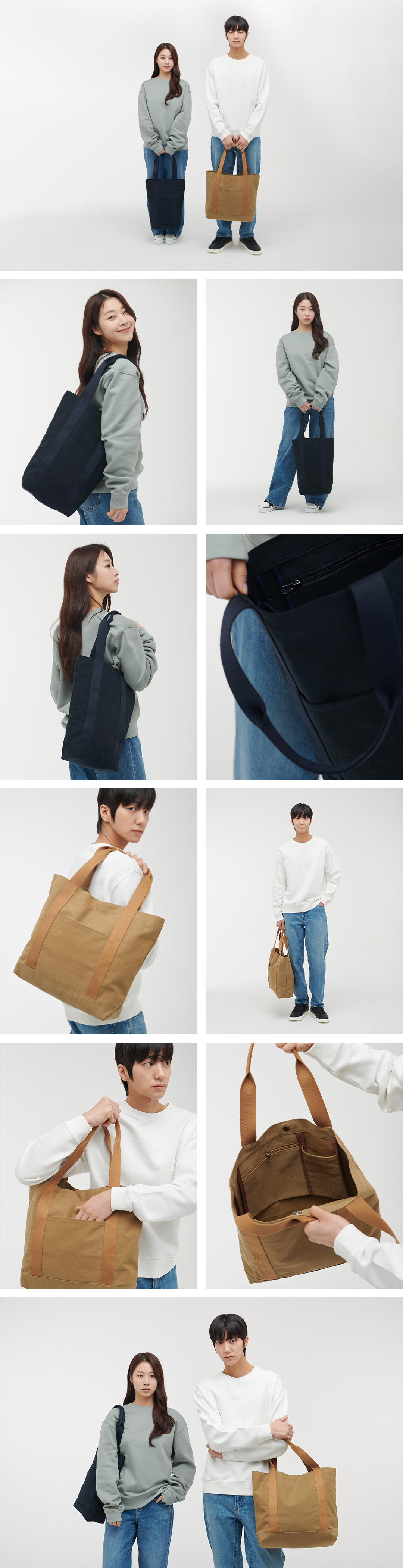 가죽이 아닌 원단으로 가방을 만들시 실루엣이 무너지며 아래로 힘 없이 쳐지기 쉽지만 디저브 에센셜 캔버스 에코는 부드러우면서도 견고하게 힘있는 면 캔버스 소재로 제작되어 많은 물건을 담아도 찢어지지 않고 실루엣을 유지합니다.
